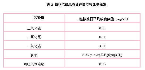 博物館環境是一種特殊的室內環境,它不僅包括人們活動的主要場所——展廳,還包括放置展出文物的封閉展柜環境及儲存未展出文物的庫房環境。因此,博物館在環境空氣質量方面,除了要符合公共場所室內環境的標準外,還需滿足文物保存所需的具體要求。