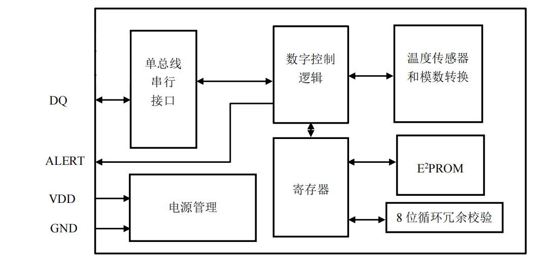 溫度芯片內(nèi)置16-bit ADC,分辨率0.004°C,具有-70°C到+150°C的超寬工作范圍。芯片有64位 ID序列號,在出廠前經(jīng)過100%的測試校準(zhǔn),根據(jù)溫度誤差特性進(jìn)行校準(zhǔn)系數(shù)的擬合,芯片內(nèi)部自動進(jìn)行補(bǔ)償計算。為了簡化系統(tǒng)應(yīng)用,芯片的ID搜索、測溫數(shù)據(jù)內(nèi)存訪問、功能配置等均基于數(shù)字單總線協(xié)議指令,上位機(jī)微處理器只需要一個GPIO端口便可進(jìn)行讀寫訪問。單總線通信接口通過共用一根數(shù)據(jù)總線來實現(xiàn)多節(jié)點傳感采集與組網(wǎng)的低成本方案,傳輸距離遠(yuǎn)、支持節(jié)點數(shù)多,便于空間分布式傳感組網(wǎng)。可支持100個節(jié)點 100至500米長的測溫節(jié)點串聯(lián)組網(wǎng)。