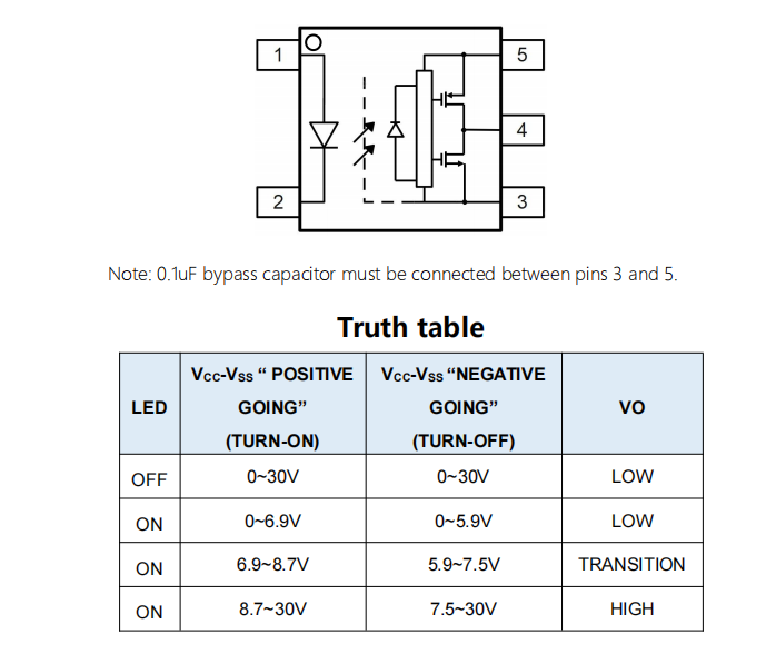 引腳配置和真值表: