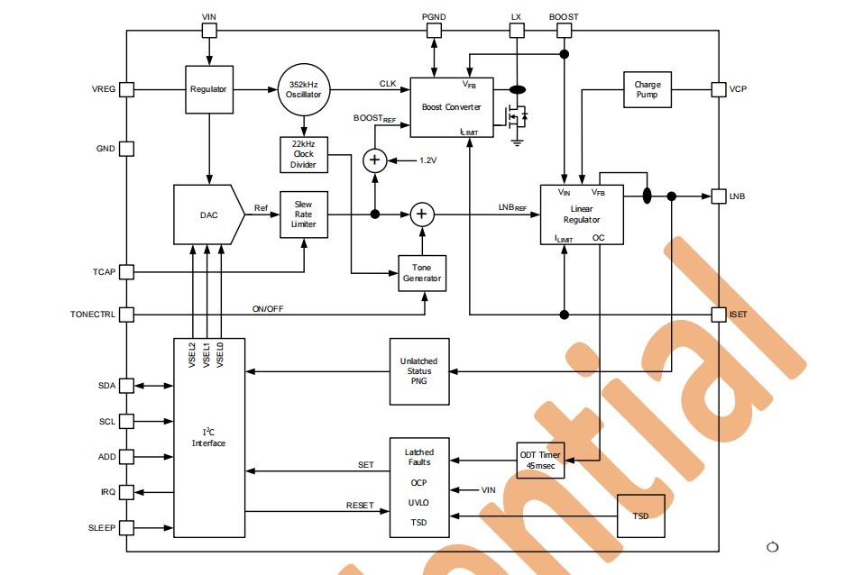內置的22 kHz音調振蕩器促進了DiSEqC?音調編碼,即使在零負載