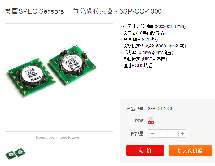 在監測空氣中一氧化碳的濃度時,工采網推薦美國SPEC Sensors 一氧化碳傳感器 - 3SP-CO-1000。