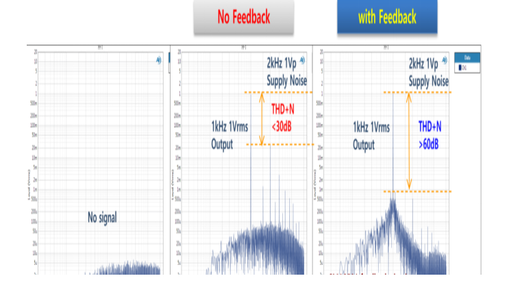 (3)右邊是打開閉環功能之后,信號與諧波信號的抑制比例達到60dB(翻一倍);