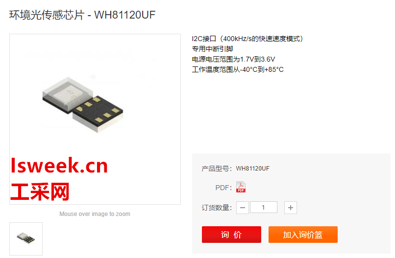 環境光傳感芯片 - WH81120UF的產品特性: