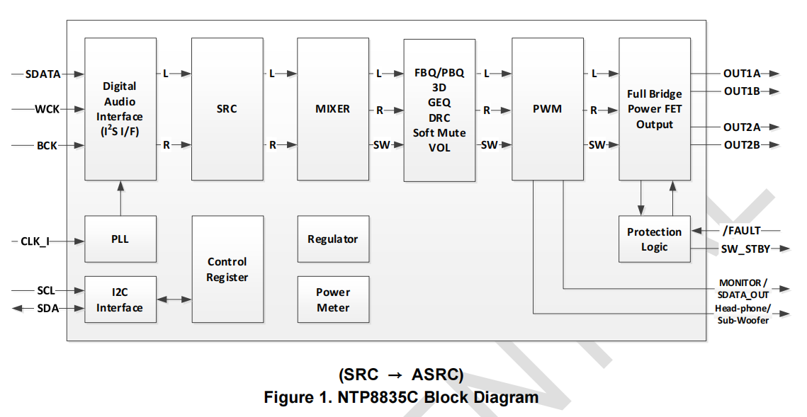 工采網(wǎng)代理的NTP8835C是韓國(guó)NF(耐福)推出的一款支持2.0/2.1聲道內(nèi)置DSP的D類音頻放大器;集成了先進(jìn)的音頻處理系統(tǒng);提供高性能、高保真音質(zhì);擁有3D環(huán)繞立體聲增強(qiáng)、音頻信號(hào)混合、多達(dá)20波段的均衡器控制,動(dòng)態(tài)范圍控制和音量控制等功能。