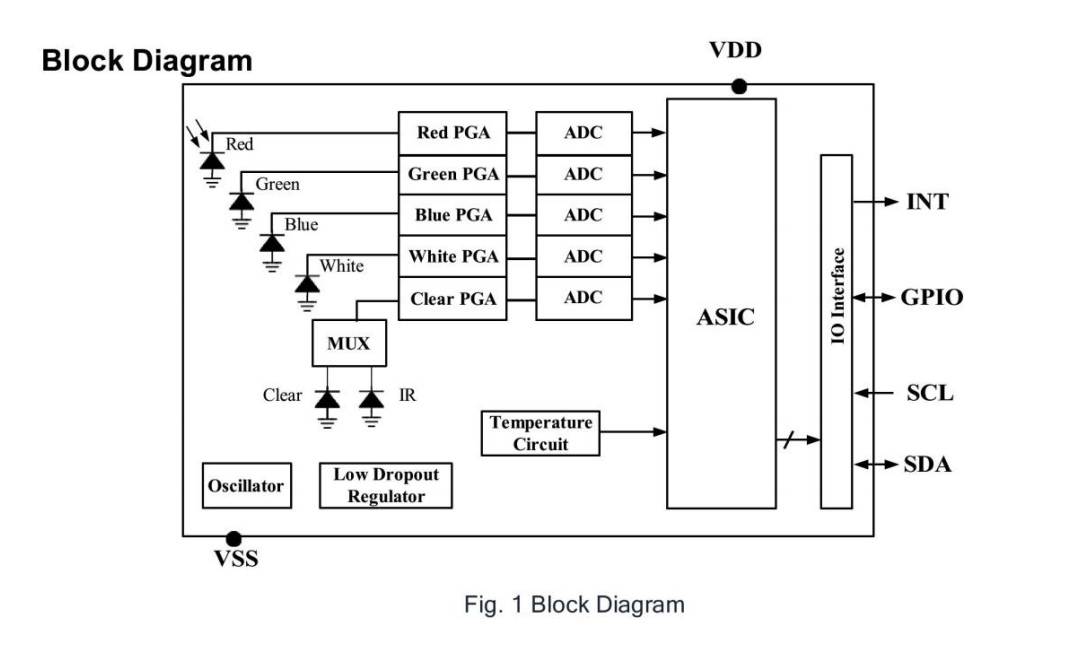 信號處理:通過光電二極管或濾光器陣列接收反射光,將光信號轉(zhuǎn)換為電信號(如電壓或頻率),并計算RGB比例。