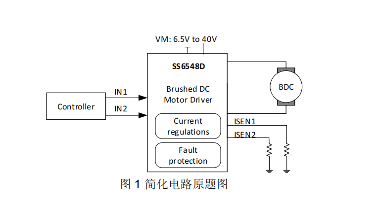 SS6548D可通過對輸入進行脈寬調制來控制電機轉速,如果將邏輯輸入設置為低電平,則芯片會進入低功耗休眠模式,此外針對故障和短路問題提供了全面保護,包括欠壓鎖定(UVLO),過流保護(OCP)及過熱保護(OTP)其高達16A的峰值輸出電流和8A持續電流能力,結合全面的保護功能與靈活的PWM控制,可提供高效電機驅動解決方案。
