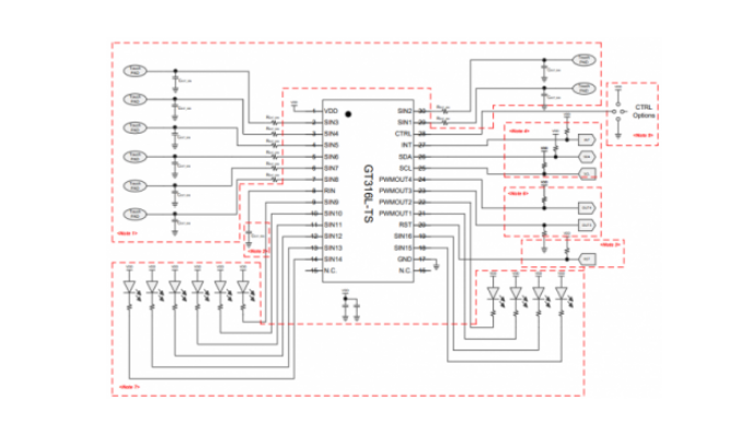 GT316L是一款16個通道電容式觸摸感應芯片,可以使用作為調光LED驅動器輸出引腳,I2C接口可以當MCU IO或連接器資源不足時使用,GT316L無論是性能還是穩定性上都達到了較高的水準。能夠受到國內市場的歡迎主要因為其本身的性能極為穩定,再加上這類產品持久的使用壽命都讓其在市場上非常受下游客戶的歡迎。