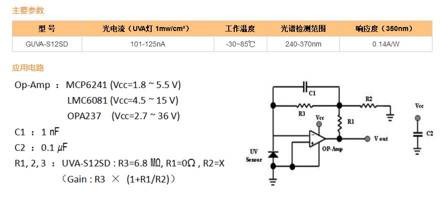 本次可以免費申請的紫外線傳感器是由韓國GENICOM公司生產的 紫外線傳感器 - GUVA-S12SD,GUVA-S12SD采用貼片式封裝(SMD3528),特別適用于小體積的設備。傳感器輸出電流與光照強度成正比,產品輸出具有非常高的一致性。傳感器都有特定的光譜響應,該產品主要是針對太陽光中紫外線測量以及UVA燈強度測量,特別適合UVI的檢測。