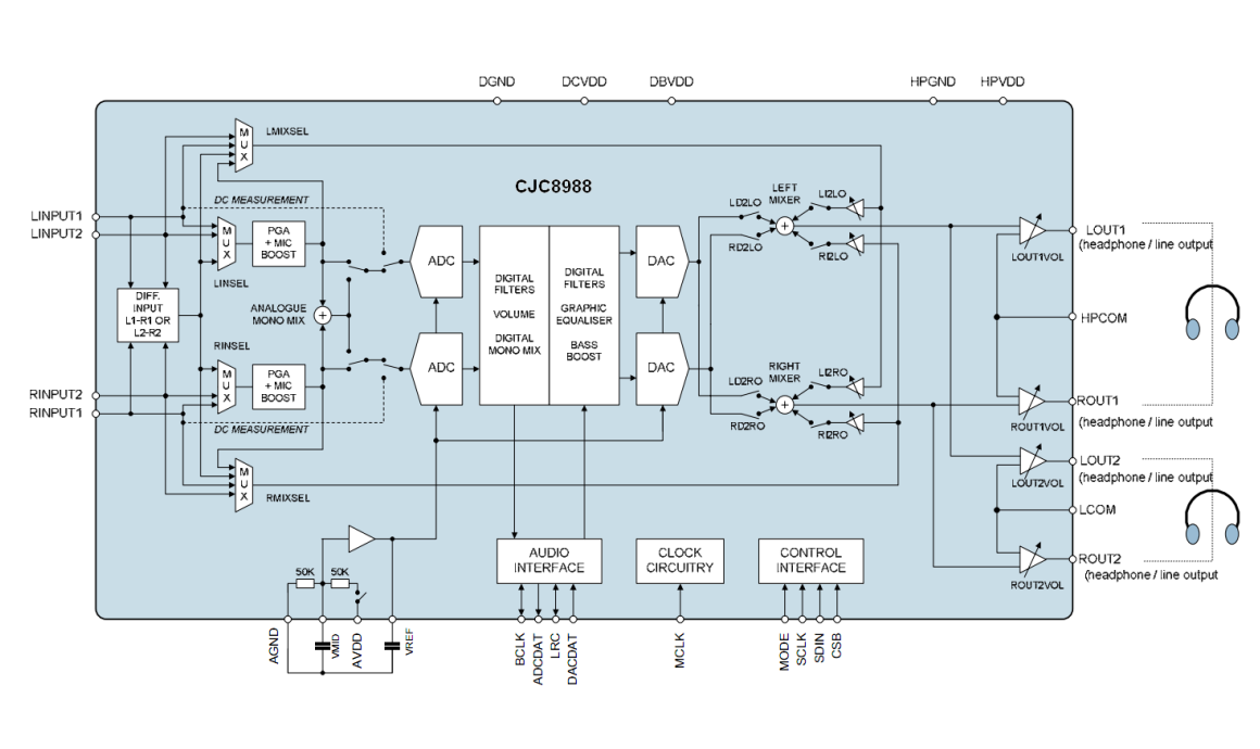 CJC8988適用于各種低功耗、便攜式設備,并提供豐富的音頻處理功能和接口;了解產品更多相關內容,請登錄工采網官網聯系“在線客服”獲取PDF規格書、詢價單,申請樣品。