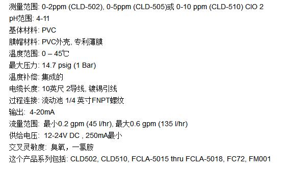 二氧化氯傳感器CLD502,CLD505和CLD510技術(shù)參數(shù):