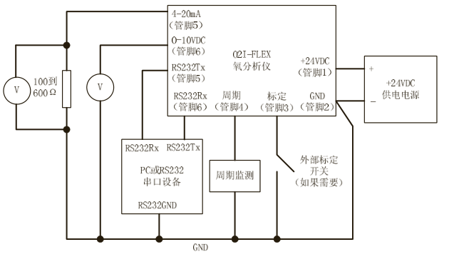 下面是OXY-Flex氧氣分析儀的管腳定義: