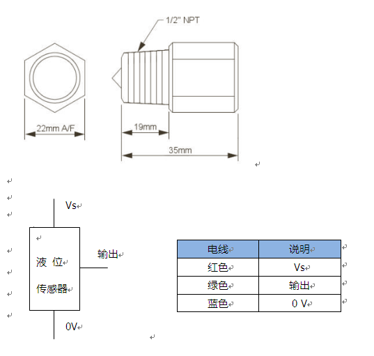 下面是LLG810D3-003液位開關的尺寸圖和電氣接口圖