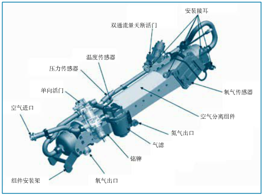 飛機燃油箱在一定條件下可分為四個不同的層面:下面為液態(tài)燃油層,該層的燃油含有氧氣,當壓力變化和被晃動時,燃油會釋放出氧氣;緊靠液態(tài)燃油層為富油氣體層,它不僅含有大量的油分子,還含有大量氧分子;再上面為含氧豐富的燃燒曾,蓋層易燃;上面為貧油分子層,氧氣濃度很淡不易燃燒。因此必須控制燃燒層和富油層的氧氣濃度,保證氧氣濃度低于9%,使燃油箱始終處于惰化狀態(tài)。目前在飛機上油箱惰化系統(tǒng)主流都是采用機載惰性氣體生成系統(tǒng)OBIGGS(On-Board Inert Gas Generating System)。