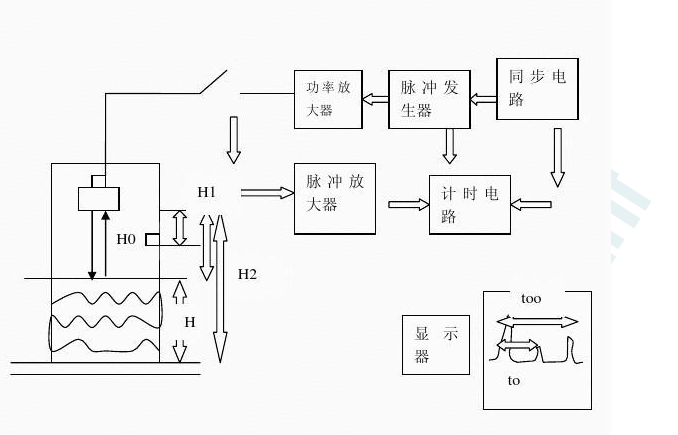 超聲波測量液位的基本原理是:由超聲探頭發出的超聲脈沖信號,在氣體中傳播,遇到空氣與液體的界面后被反射,接收到回波信號后計算其超聲波往返的傳播時間,即可換算出距離或液位高度。超聲波測量方法有很多其它方法不可比擬的優點:(1)無任何機械傳動部件,也不接觸被測液體,屬于非接觸式測量,不怕電磁干擾,不怕酸堿等強腐蝕性液體等,因此性能穩定、可靠性高、壽命長;(2)其響應時間短可以方便的實現無滯后的實時測量。