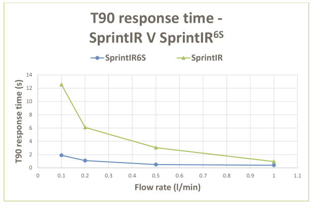 利用氣體對紅外線的吸收原理檢測。常用的是CO2傳感器。該法測定準(zhǔn)確、響應(yīng)迅速,當(dāng)氣流量 >0.2L/min 時(shí),CO2濃度響應(yīng)值T90可達(dá)到1s。所以特別適用于肺功能檢測儀實(shí)時(shí)測定CO2濃度。