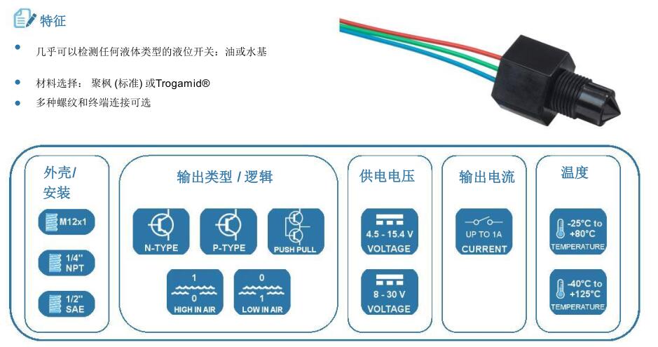 光電液位傳感器與介質(zhì)的其它特性包括溫度、壓力、密度、電參數(shù)無(wú)關(guān),故液面檢測(cè)準(zhǔn)確、重復(fù)精度高、響應(yīng)速度快、液面控制非常精確。光電探頭體積相對(duì)小巧,可以在一個(gè)測(cè)量體上安裝多個(gè)光電探頭制成多點(diǎn)液位傳感器、變送器。光電液位傳感器的內(nèi)部的所有元器件進(jìn)行了樹脂澆封處理,傳感器內(nèi)部沒有任何機(jī)械活動(dòng)部件,因此傳感器可靠性高、壽命長(zhǎng)、免維護(hù),傳感器還可以免調(diào)試、免校驗(yàn),直接安裝即可應(yīng)用。具體參數(shù)如下: