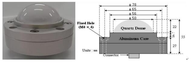 該傳感器具有防水功能,供電方式可選9~12V或者1.8~5.5V,傳感器輸出可選4~20mA和0-5V。同時也可以和MG-02/5系列的UV Radiometer配套使用,具備顯示以及繼電器和RS485輸出等功能。