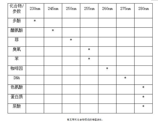 在光譜鑒定的生命科學研究、藥物生產(chǎn)和環(huán)境監(jiān)測中的一些重要的有機化合物的應用于,UVC各個波段也有不同的功能,具體見下表: