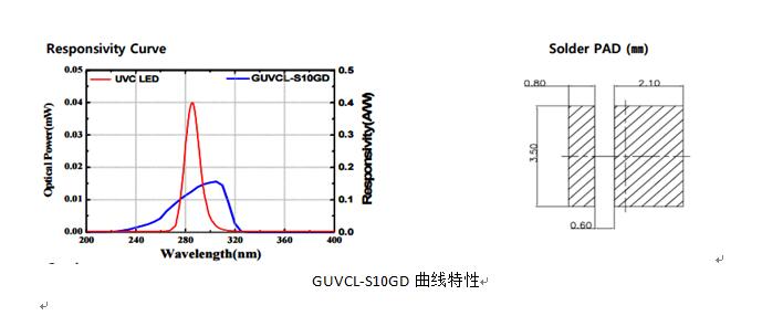 針對于普通UVC燈的水消毒或者空氣消毒的檢測,有GUVC-S40GD,該傳感器具有超小尺寸(1mm*1mm*0.3T),客戶可以根據(jù)實際情況進行二次封裝。可以完全取代傳統(tǒng)的GUVC-S10GD。
