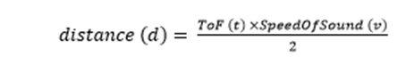 無人機著陸輔助系統使用飛行時間(ToF)原理。ToF是從傳感器發射到目標物體,然后從物體反射回傳感器的超聲波的往返時間估計因此計算公式為:距離(d)是從無人機上的超聲波傳感器到地面/物體的距離,ToF(t)是前面定義的ToF,而SpeedOfSound(v)是通過介質的聲速。ToF(t)×SpeedOfSound(v)除以2,因為ToF計算超聲回波往返物體的時間。