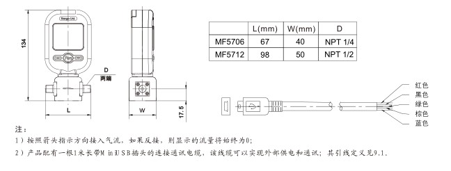 美國Siargo MF5700系列便攜式氣體質(zhì)量流量計產(chǎn)品結(jié)構(gòu)與機械尺寸: