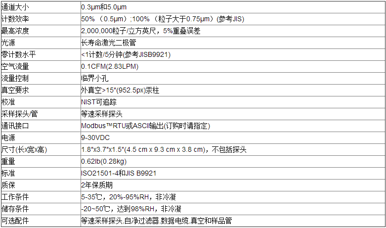 測試范圍為0.3和0.5um的粒子