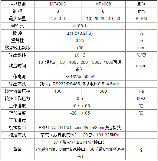 Siargo矽翔MF4000系列氣體質量流量計是專為管徑為3mm~8mm的氣體管路中的低速氣流的流量計量而設計。螺紋與各種快速接口可輕松實現機械接口轉換,滿足用戶多種氣體管路的要求,該產品可用于過程控制、大氣采樣等各種工業應用。