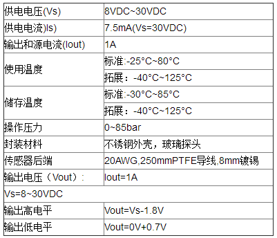 光電式液位傳感器/光電液位開關LLC200D3SH(工業級)電氣特性: