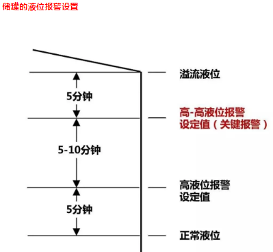 例如這是從API標準摘錄的儲罐的液位報警設置舉例。其中的時間僅作為舉例,可以根據實際情況做適當的調整。