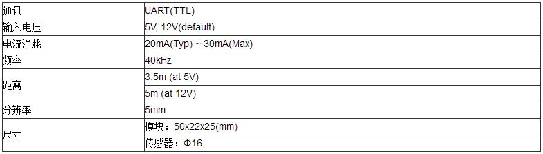 韓國Hagisonic 超聲波近距離傳感器模塊?HG-P40系列參數: