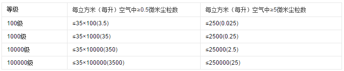 注:對于空氣潔凈度為100級的潔凈室內(nèi)大于等于5微米塵粒的計算應(yīng)進行多次采樣。當其多次出現(xiàn)時,方可認為該測試數(shù)值是可*的。