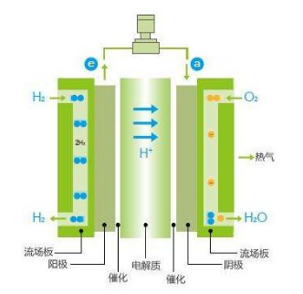 燃料氣體和氧化氣體分別從燃料電池的陽極和陰極引入。燃料氣體在陽極上發射電子,電子通過外部電路傳導到陰極并與氧化氣體結合產生離子。在電場的作用下,離子通過電解質遷移到陽極,與燃料氣體反應,形成環路,并產生電流。同時,燃料電池由于其自身的電化學反應和電池的內阻而產生一定量的熱量。
