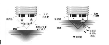 光電液位開關是一種常用的液位開關類型,工作原理是利用光電液位開關傳感器內包含一個紅外線發光二極管和一個光電接收器。發光二極管所發出的光被導入傳感器頂部的棱鏡。如果沒有液體,則發光二極管發出的光直接從棱鏡反射回接收器。當液體浸棱鏡時,則光折射到液體中,從而使接收器收不到或只能接收到少量光線。以此工作原理來通過感應這一變化。接收器可以驅動內部光電液位開關的電氣開關工作,從而啟動外部報警或控制電路。