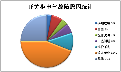 通過(guò)上圖可以看出,開(kāi)關(guān)柜的絕緣不良和設(shè)備老化故障在所有故障中占了很大的比例。絕緣不良跟設(shè)備老化也是彼此相關(guān)的故障,因?yàn)楸苊饨^緣不良就在很大程度上降低開(kāi)關(guān)柜 的故障率。