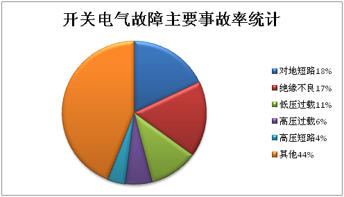 根據(jù)調(diào)查統(tǒng)計(jì)表明,開(kāi)關(guān)柜的故障主要有:拒動(dòng)、誤動(dòng)故障;開(kāi)斷與關(guān)合故障;絕緣故障;載流故障;外力及其他故障。開(kāi)關(guān)柜的故障統(tǒng)計(jì)比例如圖所示。