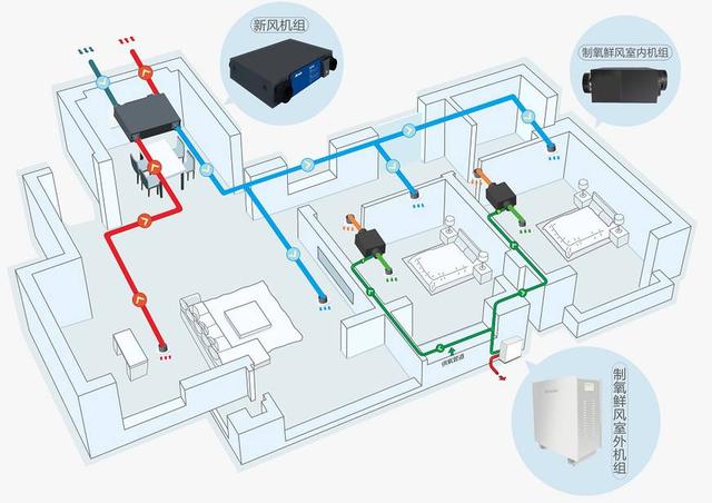 一、制氧鮮風(fēng)系統(tǒng)可通風(fēng)換氣、過濾PM2.5、去除甲醛等污染物、降低二氧化碳等(與新風(fēng)系統(tǒng)功能同)。