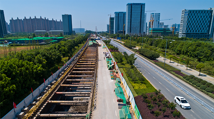 除大明路外,機場四路也已開工建設綜合管廊。南部新城集團公司總經理助理殷鳳軍說,南部新城與河西新城、江北新區的大范圍開闊地不同,內部均為小街區和高密度路網,且地下規劃建設5條地鐵線、10座地鐵站,這都給管廊建設帶來了很大限制。為此,他們因地制宜,不一味求大,而是根據道路條件建設適合新城的管廊。緯七路、機場路、承天大道等主干道建設干線管廊,為三艙到四艙,高度3米左右;機場四路等次干道建設支線管廊,一般為雙艙;其余穿街巷道路建設纜線管廊,均為單艙。南部新城的大部分管廊,都是單艙纜線管廊,10千伏供電加各類通信纜線全部入艙。