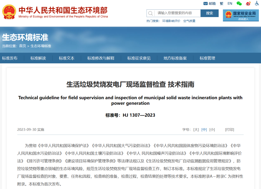生活垃圾焚烧å‘ç”µåŽ‚çŽ°åœºç›‘ç£æ£€æŸ¥æŠ€æœ¯æŒ‡å?åQˆHJ-1307â€?023åQ?pdf
